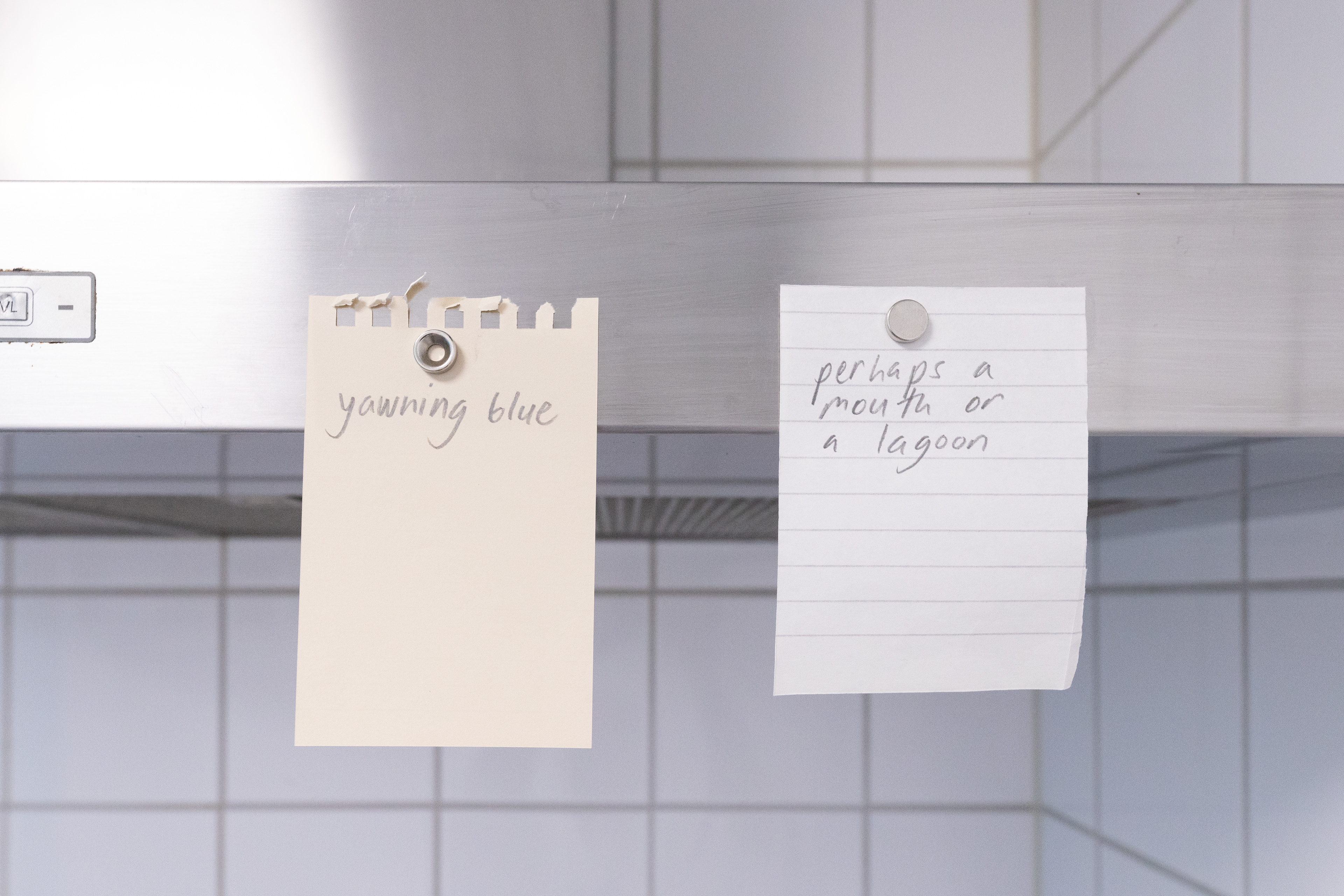 Commissioned poem for exhibition FOR SOMETHING TO BE FILLED at Pitted Dates, Helsinki, in April 2023. Photo: Sakari Tervo